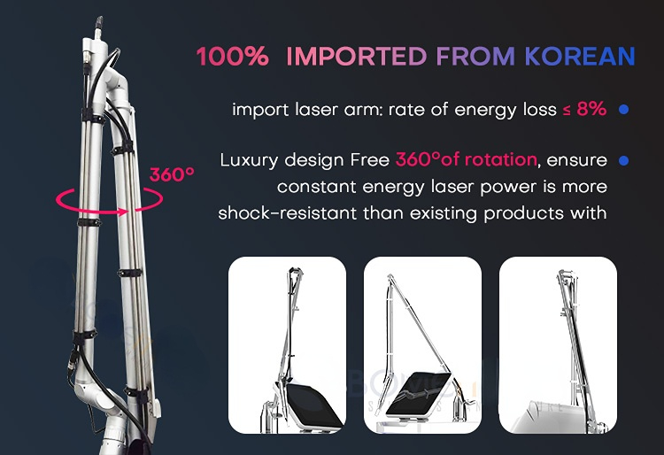 Picosecond laser uses very short pulse output mode, instead of thermal effect, by the principle of light mechanical shock wave, pigment is "shattered" into finelygranular via focused energy, aremore likely to be absorbed by the body metabolism. Picosecondlaser will be to minimize the sideeffects of thermal effect, can achieve the goal of almost solve allkinds of pigment spots, is betterthan traditional laser spot whitening effect.